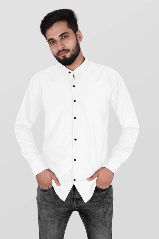 NuJiΒ Men Slim Fit Solid Mandarin Collar Casual Shirt