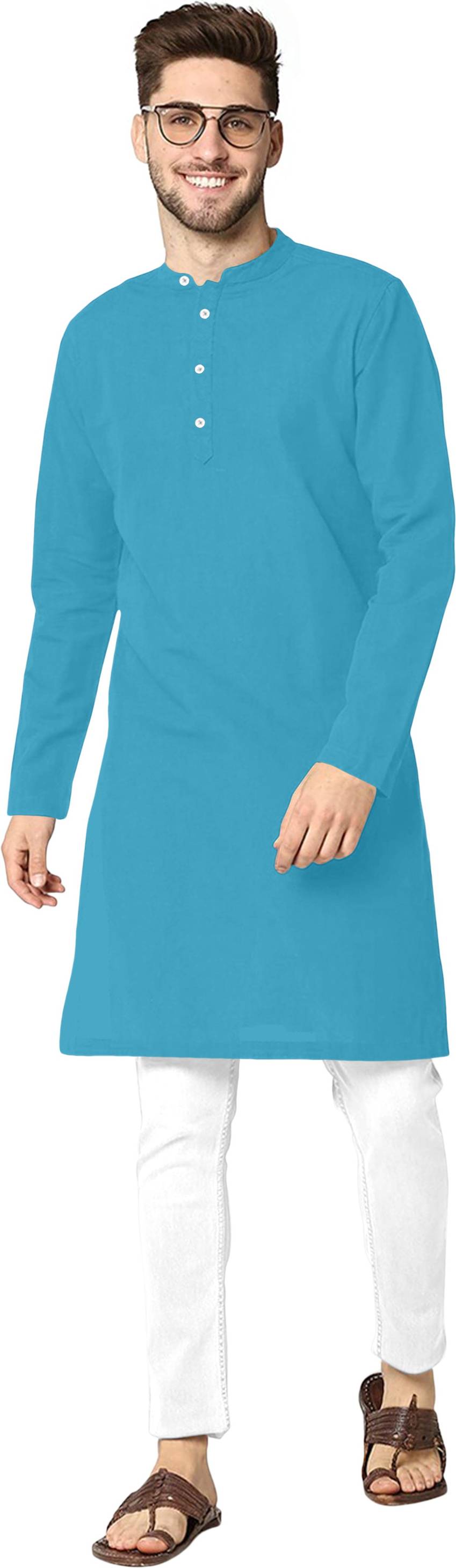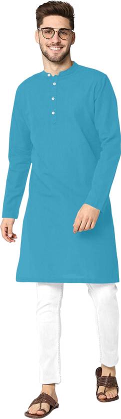 NuJiΒ Men Solid Cotton Blend Straight KurtaΒ (Blue)