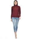NUMERO UNO Solid High Neck Casual Women Maroon Sweater