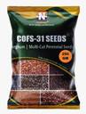 The variety is cross of Gamma ray (400 Gy) and mutant of Co (FS) 29. Co (FS) 31/ is multicut/perennial fodder sorghum, released from Tamil Nadu Agricultural University, Coimbatore on 2014. The variety is recommended for cultivation in both irrigated & part of dry conditions and suitable for anywhere climatic conditions in India. Seed rate is 4 kg per acre (Spacing is 1x1 feet for single seeds). Irrigation is 7–9 days depending upon soil conditions. It gives 6–7 cuts in one year at 60 days interval (for first harvest) and subsequent cuttings at 30 days interval. It can be multicut up to 4 years. The leaves and stem are highly succulent in nature. It is having very less leaf blade and fast growth. It contains high protein (9.86%), dry matter (25.9%) and less crude fiber (19.8%). The plants are 270-290 cm tall with 2.5–3.0 cm stem girth, having 15-20 tillers per plant. It can be grown under an annual rainfall of 300-350mm. It can be grown on any soil except on very sandy soils. Average yield of green fodder is 76-79 t/acre/yr. First weeding on 25-30 days after sowing. After each harvest a weeding may be given before fertilization.