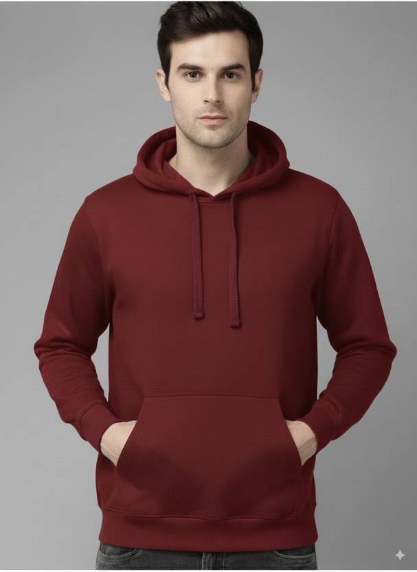 Men Full Sleeve Solid Hooded Sweatshirt