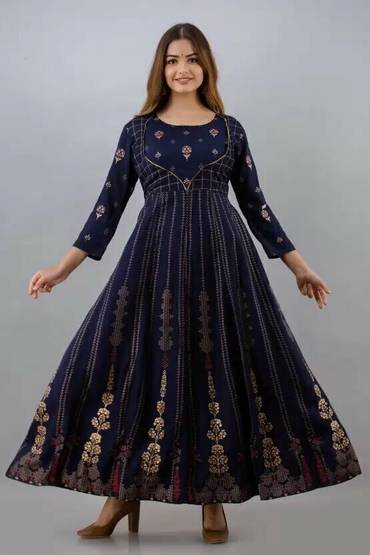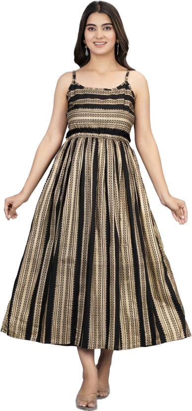 Viscose Rayon Stitched Flared/A-line Gown (Gold, Black)