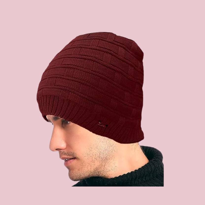 The beanie cap's classic design is tailored specifically for men, offering a timeless and versatile accessory that complements various outfits and occasions., The cap is meticulously designed for a snug and comfortable fit, allowing you to wear it for extended periods without any discomfort, making it perfect for outdoor activities., Simple to care for, this woolen cap can be easily cleaned, maintaining its quality and appearance even after repeated use, ensuring it remains a staple in your winter wardrobe for years.