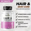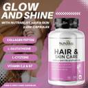 Nutrabliss Hair & Skin Care Tablets are formulated to deliver a targeted combination of essential nutrients that support hair fall control, keratin production, skin health, and nail strength. Packed with key ingredients like Glutathione, Biotin, Collagen Peptides, NAC (N-Acetyl Cysteine), Astaxanthin, Vitamin E, CoQ10, Zinc, and Dandelion, each tablet offers advanced care for those seeking comprehensive hair and skin nourishment. Glutathione, a powerful antioxidant, plays a role in maintaining even skin tone and defending against environmental stressors. Combined with Astaxanthin and CoQ10, these antioxidants contribute to skin protection, elasticity, and hydration. Vitamin E and Zinc further support skin texture and help reduce oxidative stress, contributing to a clearer and healthier-looking complexion. Biotin, Collagen Peptides, and NAC work together to support hair health, strength, and structure. These nutrients contribute to keratin synthesis, which is essential for maintaining strong hair and nails. Regular use of Nutrabliss Hair & Skin Care Tablets may assist in managing hair thinning, breakage, and dullness, promoting thicker, more resilient hair. The formula also includes Dandelion Extract, traditionally used for internal detox support, helping maintain a balanced internal environment that contributes to external appearance. This unique botanical addition supports overall wellness and may assist in managing everyday stress-related skin issues. Whether you're dealing with hair fall, weak nails, or dull skin, Nutrabliss Hair & Skin Care Tablets are designed to work from the inside out, helping you maintain your natural beauty and inner vitality. Each bottle contains 60 tablets, offering a convenient one-month supply of high-quality, nutrient-rich support. Ideal for both men and women, this supplement fits easily into your daily routine without harsh chemicals or unnecessary fillers. Free from GMOs, artificial preservatives, and common allergens, Nutrabliss is crafted to meet high safety and quality standards. Enhance your wellness journey with this all-in-one beauty supplement that prioritizes the health of your hair, skin, and nails.
