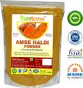 Ambe Haldi ( Curcuma aromatica ) dried and powdered used for external application to the skin. It makes a wonderful skin rejuvenative for skin whitening when used in fresh or raw from in face pack. Kasthuri manjal grows larger than normal haldi used in curries, is lighter in color, more aromatic and has a thinner skin. It is a Natural antiseptic , also recommended for acne ,natural? cleanser and helps in skin lighting.
