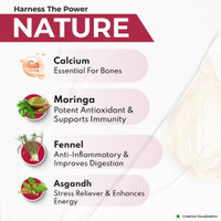 Infused with ginseng, moringa, sesbania, and asgandh extracts, this supplement harnesses the power of nature for enhanced immunity and stamina. These botanicals are known for their antioxidant properties and support your body’s resilience against everyday stressors while promoting vitality throughout the day.