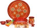| Sales Package | - Stone Embedded Pooja Thali : 1 Pc, Kalash/Lotha : 1 Pc, Chalni : 1 Pc, Deepak/ Diya : 1 Pc, Mehendi : 2 Cones, Ferrero Rocher : 1 Pc