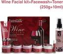 Wine Facial Kit contains Wine Deep Cleanser-50g, Wine Exfoliation Scrub-50g, Wine Nourishing Gel-50g, Wine Whitening Cream-50g, Wine Firming Mask Pack-50g & Wine Serum-10ml which is suitable for both oily & dry skin. Packed with the graciousness of Red Wine & world-class beauty enhancers, our Wine Facial Kit is qualified to help you get rid of visible signs of ageing & rejuvenates your skin to give long-lasting glowing skin. It encourages your natural beauty to come out fully-fledged and is a potent formulation that: Removes Skin Blemishes & Dark Circles Eliminates Visible Signs of Ageing Acne Defense to Make You Look young Improves Skin Elasticity Soothes & Calms Skin How to use Wine Facial Kit? Step 1 Cleanser - Apply it on the face and neck, massage in upward and outward small circular strokes for 2-3 minutes, and wipe off with moist cotton. Pay special attention to the corners of your nose, hairline, chin, and neck. Step 2 Scrub - Mix the scrub with water to make a paste and apply that all over the face. Massage gently in upward and outward circular movements for at least 5-7 minutes. Rinse off with splashes of cold water Step 3 Gel - Apply the gel all over the face and neck. Massage gently with fingertips till it gets absorbed Step 4 Cream - Take the cream on your fingertips and apply it all over the face and neck. Massage with light circular upward strokes for 10-15 minutes Step 5 Mask - Apply the mask evenly all over the face and neck, avoiding the eye area. Place two wet cotton wool pads over the eyes and relax for 10-15 minutes. Wipe off with a damp tissue and then rinse gently by splashing cold water Step 6 Serum - Take the required amount of serum in your hand and gently massage all over your face and neck for soft, supple, and hydrated skin