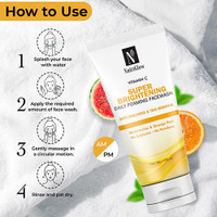 Simplify your skincare routine with our user-friendly face wash. Just dispense a small amount, massage gently onto damp face and neck using circular motions, then rinse thoroughly with water. Enjoy the convenience of a quick yet effective step towards achieving clearer, more radiant skin. Incorporate our Vitamin C-infused face wash into your daily regimen to experience the transformative benefits of natural ingredients combined with gentle yet effective cleansing action.