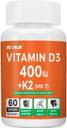 NutriJa Vitamin D3 400IU + K2 55Mcg as MK7 Supplement Sourced from Lichen (60 Capsules)