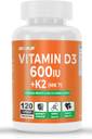 NutriJa Vitamin D3 600IU + K2 55mcg as MK7 Supplement, Stronger Immunity, Support Bones (120 Capsules)