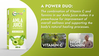 Enriched with potent antioxidant properties and vitamin C, this amla juice is a boon for hair care and nourishment. By strengthening hair follicles, promoting effective hair growth, and reducing hair fall, it paves the way to lustrous and healthy locks. Moreover, thanks to its rich vitamin C content, this juice serves as a natural immune booster, fortifying your body's defences and shielding you from various ailments. Besides, courtesy of its unique composition, this amla juice offers a plethora of benefits for your skin. It can effectively combat marks, pigmentation, and blemishes, aiding in the oxidation of melanin and promoting a radiant complexion. Additionally, it works wonders in closing skin pores and tackling white spots on nails, leaving you with smooth and flawless skin. And, it benefits your eyesight and digestive well-being, allowing you to lead a healthy lifestyle and enjoy the numerous advantages of this pure and organic juice.