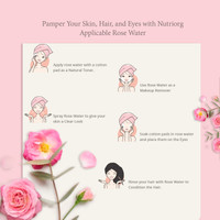 With its multiple uses, this rose water offers a comprehensive beauty and wellness solution. Moreover, you can apply it with a cotton pad to experience its natural toning properties, keeping your skin rejuvenated. Furthermore, you can utilise this rose water as a gentle yet effective makeup remover to cleanse your skin and remove impurities. Additionally, you can spray it generously on your face to give your skin a clear, glowing look. Lastly, you can pamper your eyes by soaking cotton pads in this rose water and placing them gently over your closed eyes to soothe and refresh them.