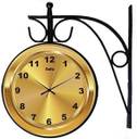 Nutts Analog 24 cm X 24 cm Wall Clock (Gold, With Glass, Double-Sided)