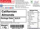 Nutz and Spize Californian Almonds Vacuum packed 1 Kg has gained grounds in the eyes of Indian populaces, since the quality and healthy products is our niche. We are a leading brand which afford all quintessential and natural dry fruits and nuts. Assuring the freshness and crispiness of our products by sealing them with vacuum packaging technology such as to retain it's natural freshness. Assaying the packaging convenience and providing all sorts of products ranging from all sizes and flavours to choose. Be assured to buy our nutritious and delicious products. Our finest health products are: Cashews , Almond, Walnut, Pistachios, Raisins, Dates, Ajwa, Mabroom, Medjoul, Fard, Khumani Turkel Apricot, Dried Figs, Macadamia Nuts, Hazel Nuts, Brazil Nuts, Kiwi, Pineapple, Prunes, Blueberries, Strawberries, Chia, Flax, Pumpkin, Sabja, Basil Seeds, Quinoa Seeds, All Indian Spices with 100% rich ingredients. We are just aiding India to get in robust health. Place your Order Now..!