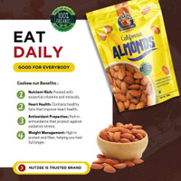 Sporting an impressive list of essential nutrients, these almonds are rich in vitamins, calcium, iron, and magnesium. Courtesy of their antioxidant content, they help protect cells from oxidative stress, supporting long-term wellbeing. The presence of healthy fats contributes to good heart function, while the high protein and fibre help in weight management by promoting satiety. With omega-3 and various micronutrients, these almonds serve as a beneficial snack for daily consumption.