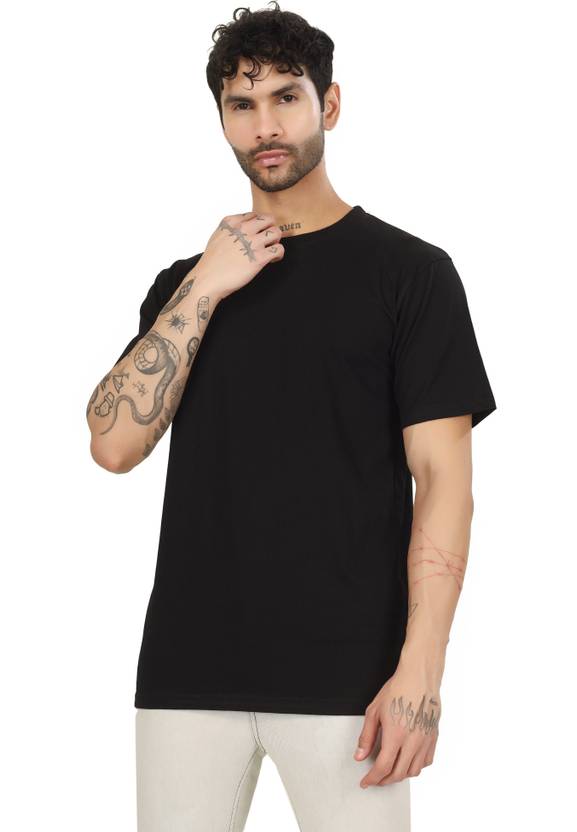 Men Solid Round Neck Pure Cotton Black T-Shirt