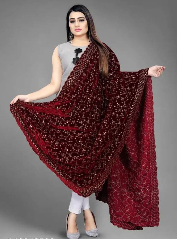 DUPTTA FABRIC: VELVET DUPATTA LENTH :2.15M.. DUPATTA WORK EMBROIDERY SEQUINS WEDDING PARTY FESTIVEL FUNCTION