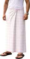 This premium men’s lungi is crafted from soft, breathable cotton, designed for all-day comfort in warm climates. The elegant brown checked pattern on a clean white base gives it a classic and timeless look. In the side view, the lungi shows a neat fall and smooth drape, highlighting its fine weave and balanced check alignment.