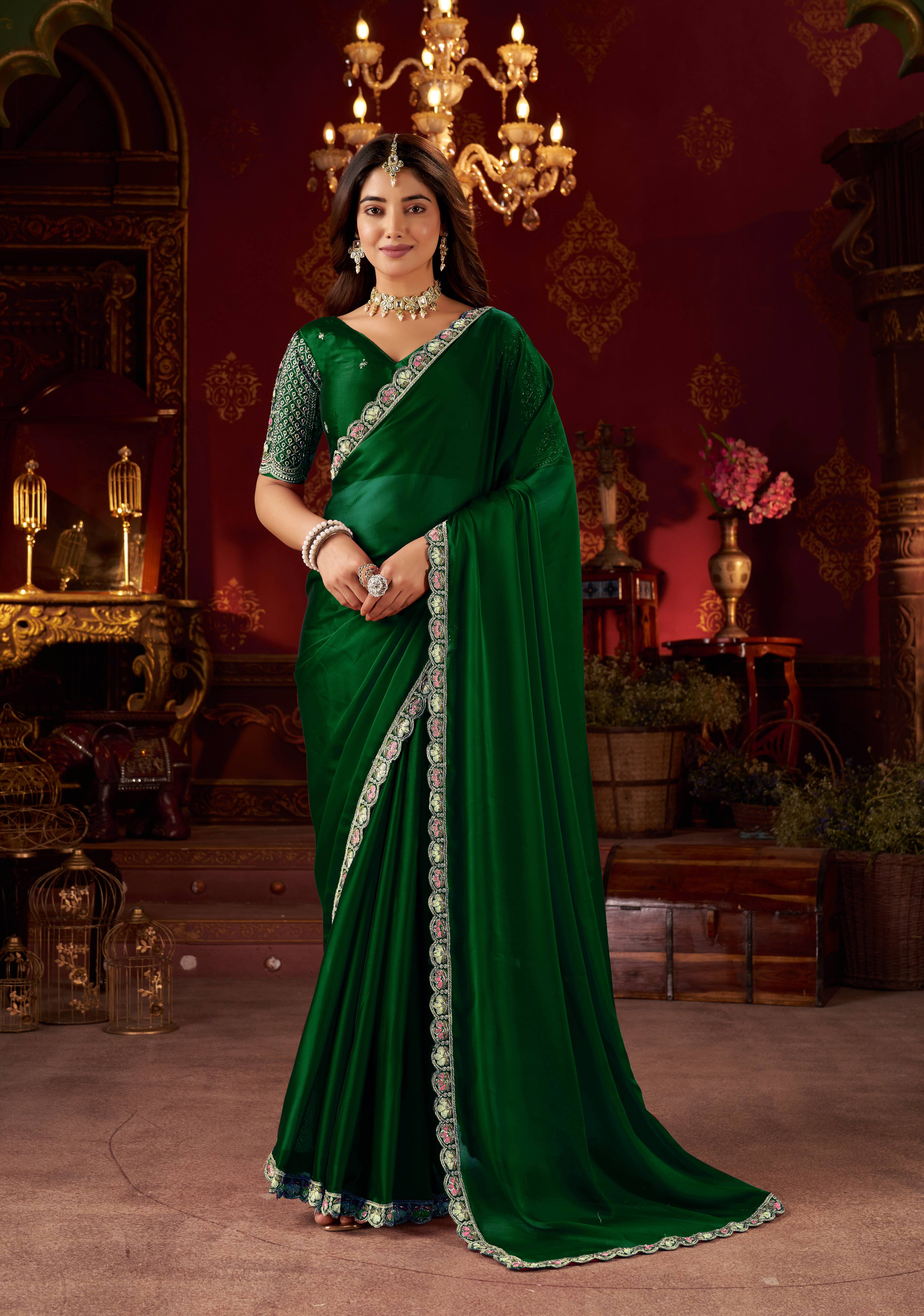 Solid/Plain Bollywood Silk Blend Saree (Green)