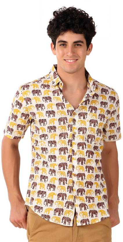 mens jaipuri trdditional printed cotton half sleeve shirt