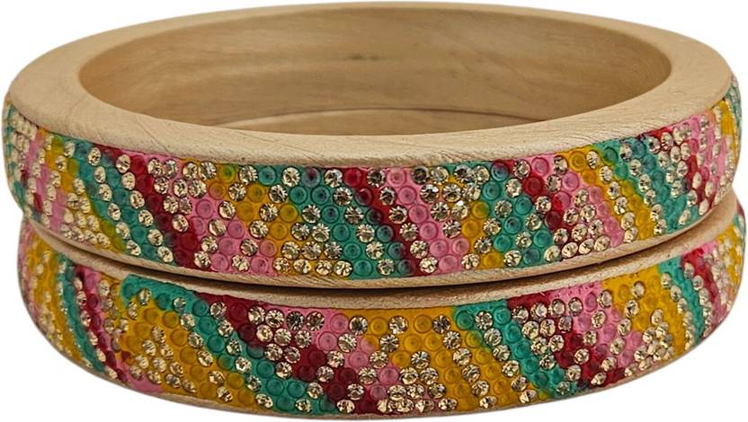 Add a vibrant touch of tradition to your ethnic look with these beautifully handcrafted Lac Bangles by NY LIFESTYLES. Designed with multicolour crystal embellishments in a stylish diagonal pattern, these bangles bring together timeless Rajasthani craftsmanship and modern festive fashion. Lightweight, smooth from the inside, and comfortable for long wear, they are perfect for weddings, parties, festivals, and daily styling.