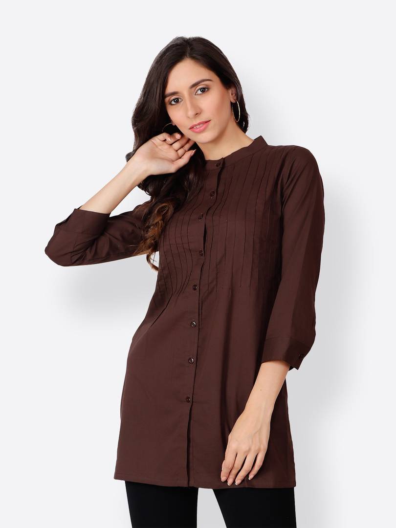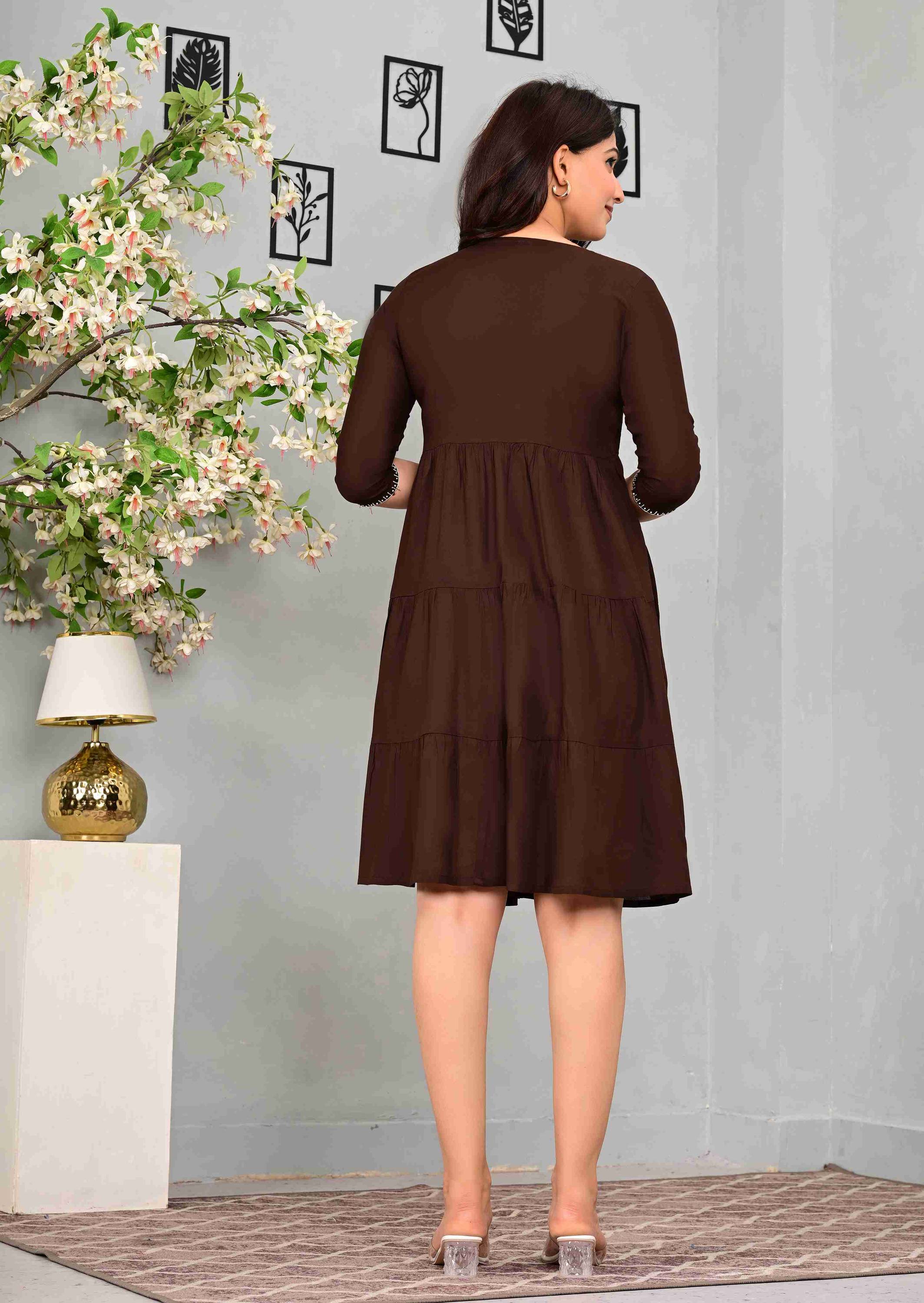 NYASHA Women Solid Viscose Rayon Flared Kurta (Brown)