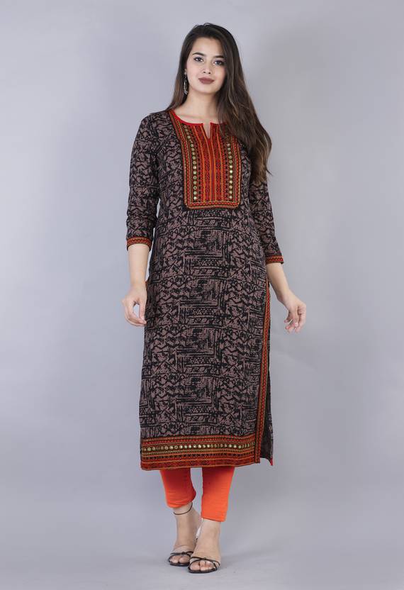 Keep your look lively when you wear this kurta . Exclusively designed, this kurta will enhance your look and will keep you comfortable. Style : Straight , Material :Rayon , Sleeves :3/4th Sleeve , Length :Calf Length , Flaunt Your Style With this exclusive and beautifully designed kurti everytime you wear this be in party , dialy work , office or any festive design . Team it with a salwar or churidar in lighter or brighter hues to create a contrasting effect. Wash Care : Normal Wash .Wash Separately