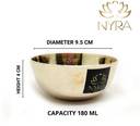 NYRA offers the Use of Bronze Bowl every day. The product is tailored for the needs of the Indian household. It can be used to consume any type of food including cereals like cereals, vegetables, sweets etc. in Indian kitchen, assuring the effect of material on food items made of bronze of food grade. A dazzling gold color attracts everyone towards the product. Product capacity is 180 ml.