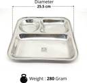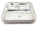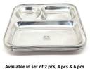 Nyra ®Stainless Steel 3 in-1 Dinner Plate -Rectangular Plate for Snacks & Dinner Sectioned Plate (Pack of 4)