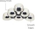 Nyra presents you a Set of 6 Pcs Stainless steel Round katori bowls – 200 ML each for your kitchen. Refresh your kitchen with these new shiny Bowls. Its elegant and simple design is suitable for any occasion. Perfect for any catering, buffet and home. Made from stainless steel, durable and safe to use. They are used in serving ice cream, curry, soups along with various other rations. An essential Indian dinnerware to present Indian desserts like halwa, pudding and any sweets like gulab jamun, rasgulla for authentic Indian dining experience. You can also serve Daal, chutney & vegetable soup.This katori set will make a perfect utility item while adding a stylish edge to your dinner table, this set is made durable, beautifully designed to add grace to your dining experience. Also strong in construction and will not bend or have dents during normal use. This set helps save shelf space in the kitchen. It has a shiny finish to it and it will magnify the look of any dinner setting. This dessert bowl / wati has an elegant finish to add a touch of elegance to your kitchen. When Not in use these bowls can be stacked in to one other, so saving space in your kitchen cupboard.