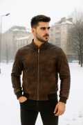 Stylish faux leather jacket featuring a sleek stand collar, front zip closure, and quilted shoulder detailing. Designed with zippered pockets, a slim-fit silhouette, and soft inner lining for all-day comfort and urban edge.