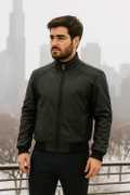 Classic faux leather jacket with full sleeves, a sleek zip closure, and a modern fit, designed for style and comfort with a soft inner lining.