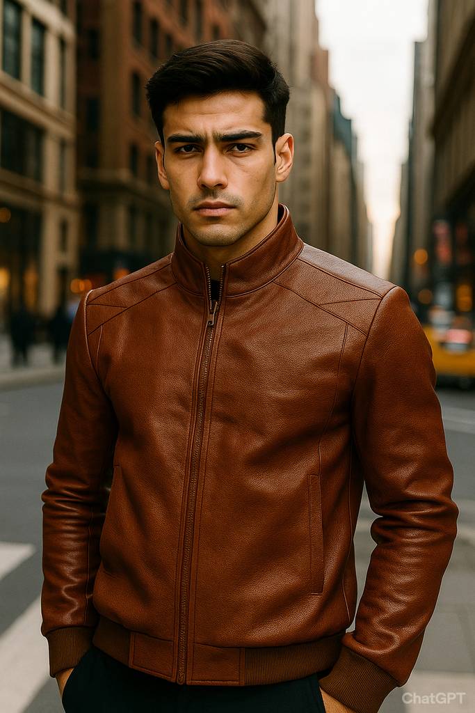 Stylish faux leather jacket featuring a sleek stand collar, front zip closure, and quilted shoulder detailing. Designed with zippered pockets, a slim-fit silhouette, and soft inner lining for all-day comfort and urban edge.