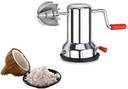 The blade is made from high grade stainless steel mental which is resistant to wear on a long term basis. The mechanism converts rotary motion of ones hand to the removal of coconut flesh from its shell. The base is fitted with a vacuum chamber to ensure no slippage occurs on the kitchen counter tops while in use.