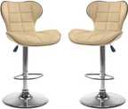 Oakcraft Cushion Upholstery with back Support, Airlift Adjustable Swivel Solid wood Leatherette Bar Stool (Finish Color - Camel, DIY(Do-It-Yourself))