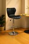 Oakcraft Cushion Upholstery with back Support, Airlift Adjustable Swivel Solid wood Leatherette Bar Stool (Finish Color - Grey, DIY(Do-It-Yourself))