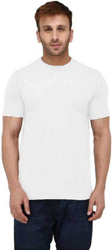 Men Solid Round Neck Cotton Blend White T-Shirt