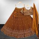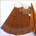 Self Design Semi Stitched Lehenga Choli (Brown)