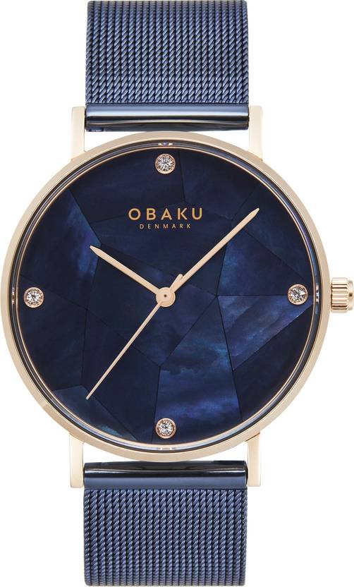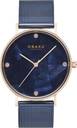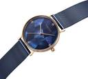 The dial on this watch is made of intricate mother of pearl put together in a mosaic pattern. What is Mother of Pearl? Unsurprisingly, pearls and mother of pearl are made of the same substance: nacre, an iridescent material composed of calcium carbonate. Nacre is created by mollusks to protect their soft interior tissue. Mother of pearl is believed to have stress-relieving properties, bringing calmness and stimulating intuition and creativity. This elegant watch is fitted with 4 crystals in the dial and is made of corrosion resistant stainless steel. The combination of a rose-gold plated case, blue dial and blue mesh bracelet gives an elegant feel.