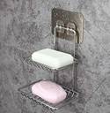 OBIXO Strong Magic Sticker Series Self Adhesive Stainless Steel Double-Layer Soap Holder Dish for Bathroom (STEEL)