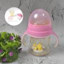 Oblivion Plastic Baby Feeding Bottle with Handles, Straw & Cleaning Brush – 3-in-1 Set - 240 ml (Pink)