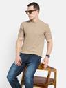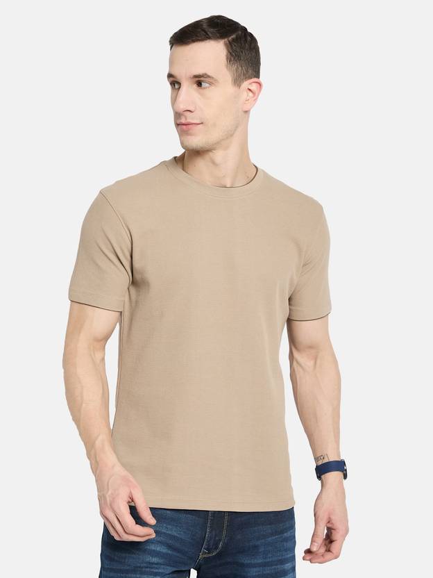Men Solid Round Neck Cotton Blend Brown T-Shirt