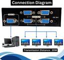 Built with a durable metal casing, this VGA splitter box reduces interference and guarantees long-lasting use. Its plug and play VGA splitter design requires no drivers or software—just connect and start sharing instantly. This makes it suitable as a VGA splitter for trade shows, training rooms, retail displays, and even home use like gaming or entertainment systems.