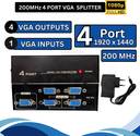 This 4-Port VGA Splitter 1 In 4 Out is a reliable VGA video splitter and VGA signal distributor that allows you to connect one VGA input device to up to four VGA output devices such as monitor, projector, TV, and LCD display at the same time. Perfect for both home and professional setups, this VGA splitter delivers stable performance across multiple screens.