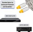 Durable & Reliable: Braided nylon exterior with TOSLINK male-to-male connectors ensures long-lasting performance and dust-proof protection.