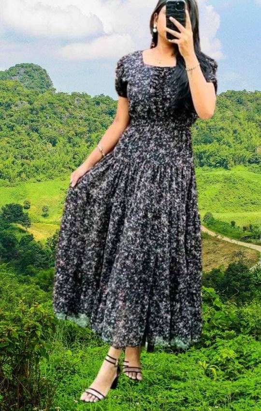 dive into an enchanting world of glamour with our Women's flaired dress in luxurious silk blend, boasting a round neck, printed, and a sleeveless. this dress is a captivating blend of sophistication and modern allure, designed for the woman who appreciates the artistry of fashion. crafted from high-quality silk blend, the dress offers a sumptuous and graceful drape that effortlessly accentuates your silhouette. the round neck design adds a touch of contemporary chic, showcasing your shoulders and neck elegantly. this neckline is both stylish and timeless, making it an ideal choice for those who want to make a bold yet classic statement. the sleeveless design enhances the dress's versatility, allowing you to embrace warmer weather or showcase your favorite accessories. the Midi length exudes elegance, creating a dramatic and enchanting effect that makes this dress perfect for formal events, evening galas, or any special occasion where you want to make a lasting impression. in summary, the Women's flaired dress with a round neck, printed, and sleeveless design is a testament to contemporary glamour and timeless sophistication. with its exquisite design, quality silk blend fabric, and thoughtful details, this dress is a standout piece that transforms any event into a moment of allure and grace, making you the epitome of modern elegance.
