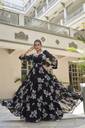 CHANSI TRENDZ Black Georgette Floral Print Flared Frilled A-Line Gown