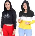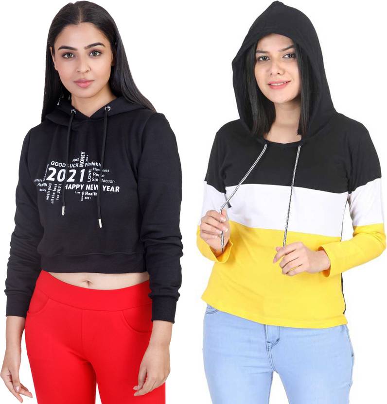 ODDWAY Women Full Sleeve Printed, Color Block Hooded Sweatshirt