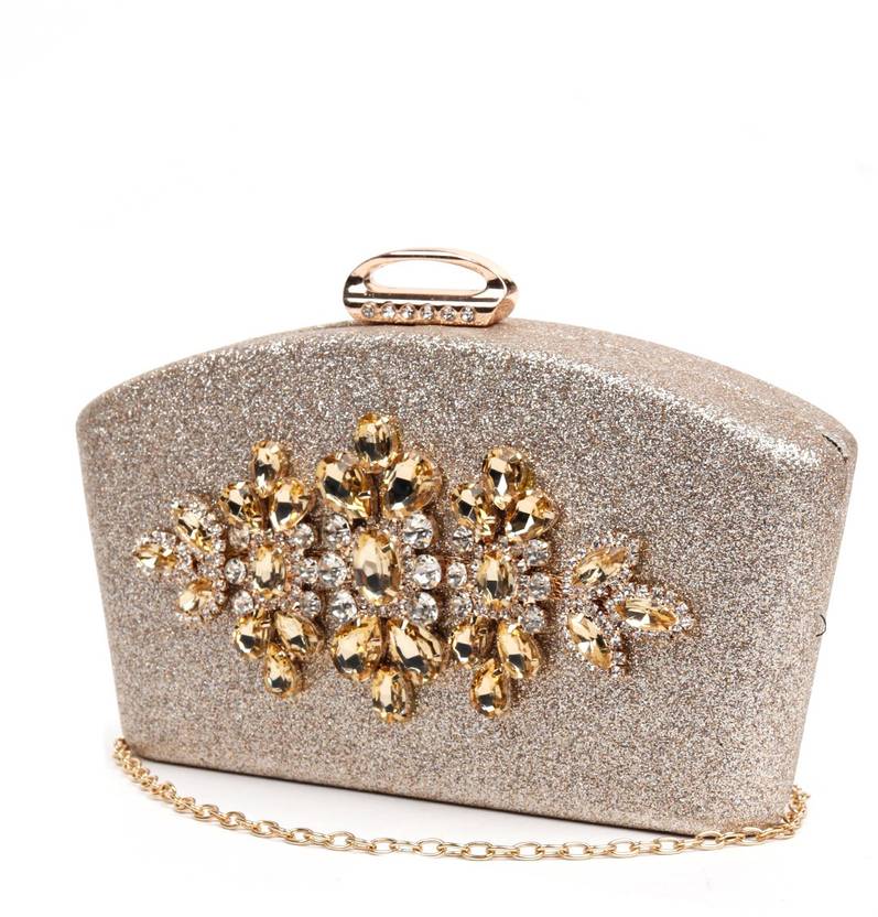 Gold Women Clutch Champagne shimmering gold clutch embellished with crystals